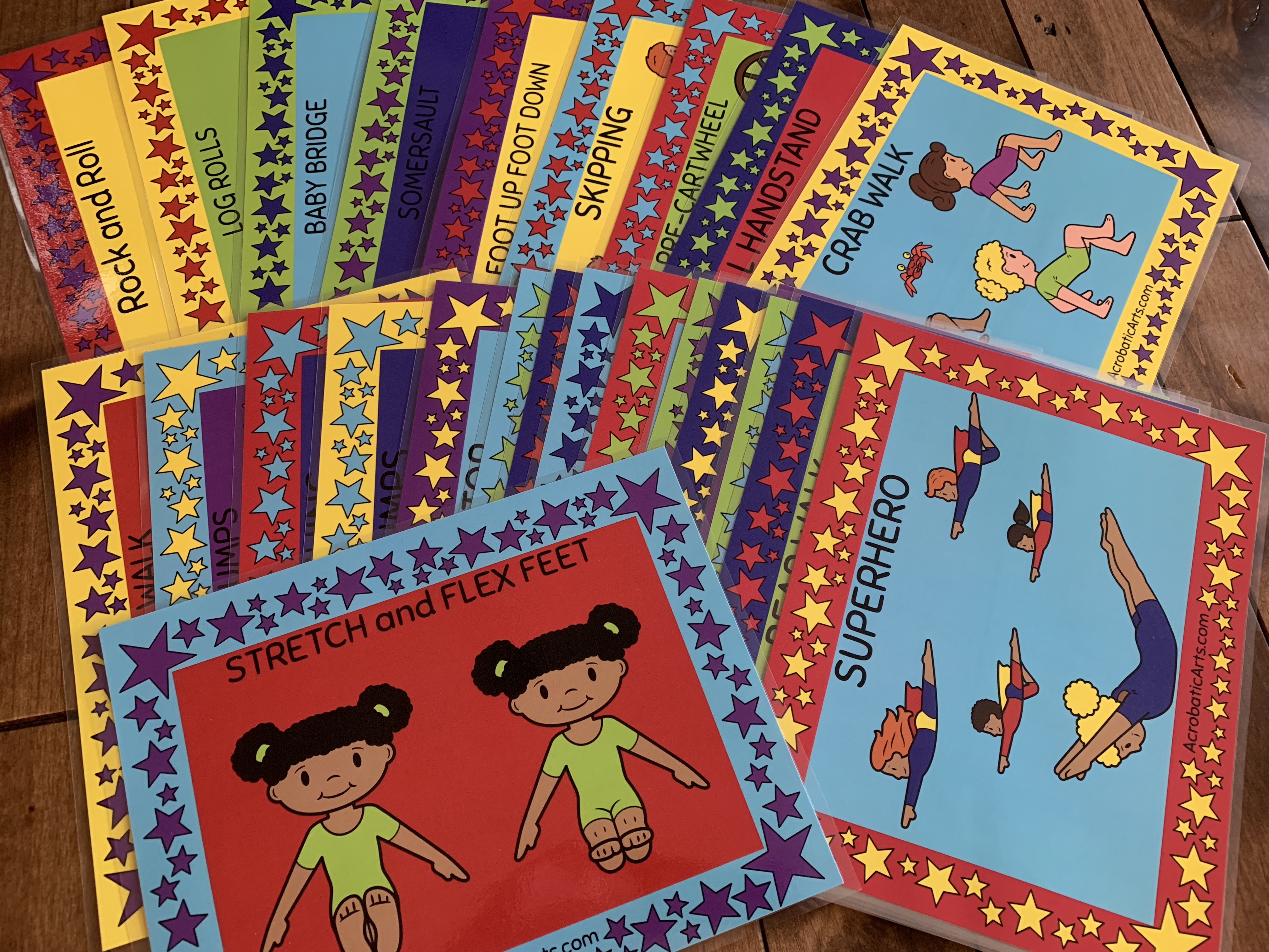 Pack of 31 different Acro Pre School station cards - each outlines a skill from the AcroDance PreSchool by Acrobatic Arts